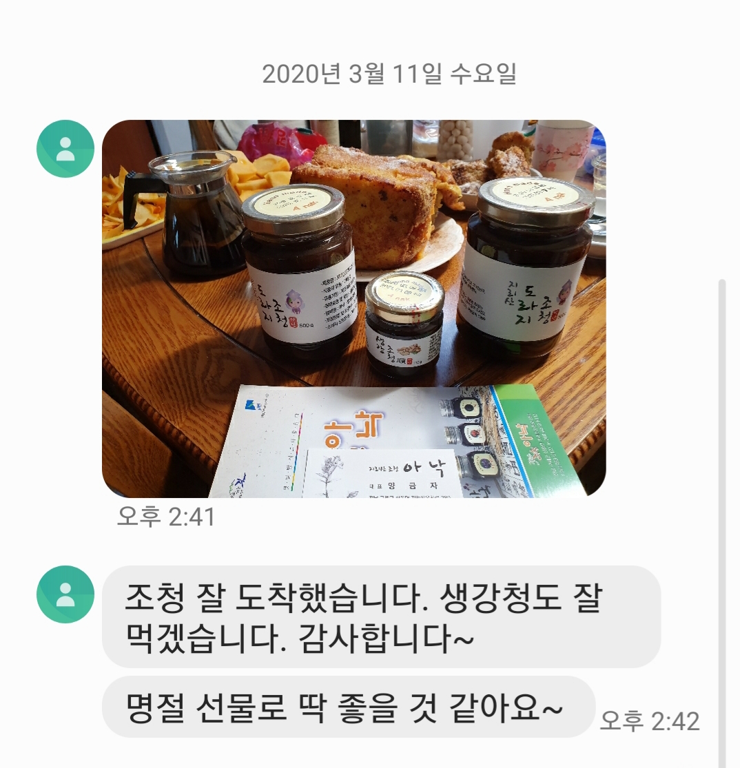 주문하시다 산수유조청은 구례가 산수유 산지이고 구례특산품이라고 했더니 세가지로 맞춰 달라고 하셔서