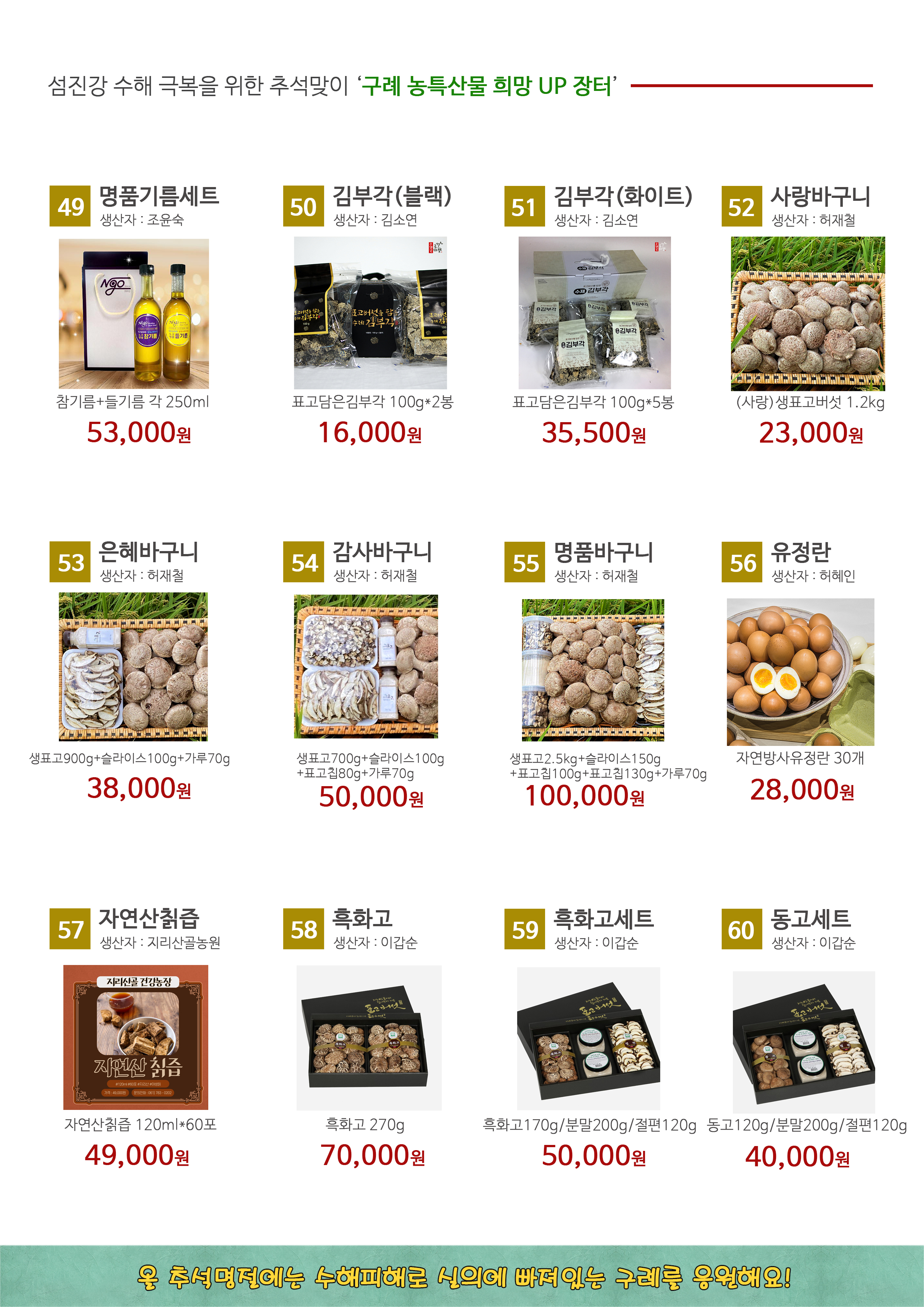 ※섬진강 수해 참사 복구을 위한 추석맞이 '구례 농특산 희망 UP 장터'가 개장합니다